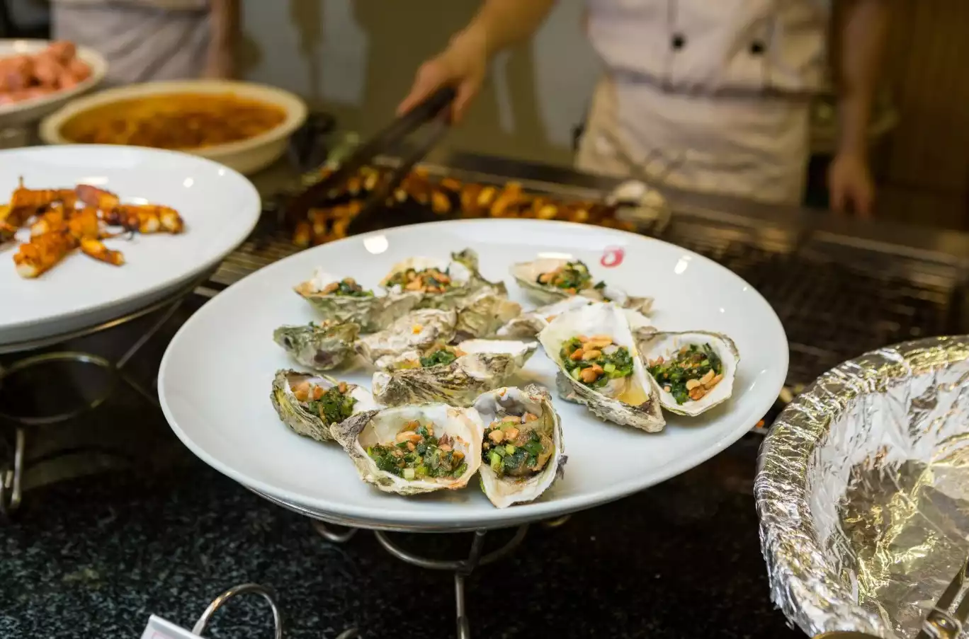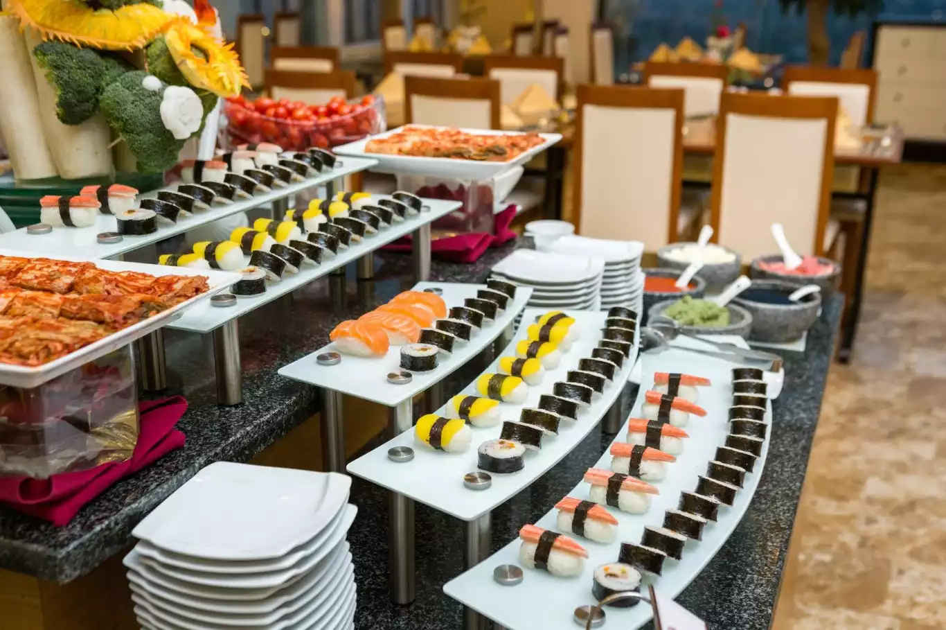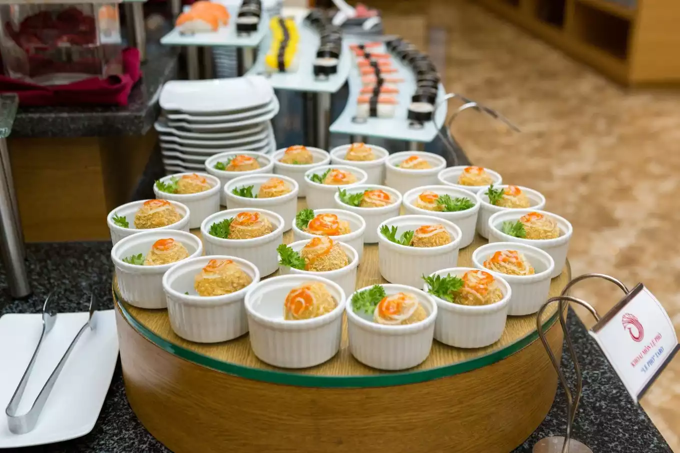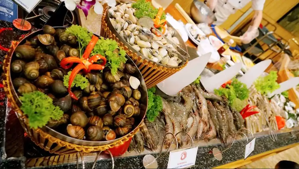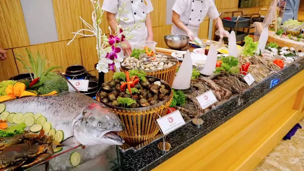 Điểm đặc biệt khiến Nhà hàng Buffet Phoenix trở thành điểm đến yêu thích của nhiều thực khách là thực đơn đa dạng và phong phú, với hàng trăm món ăn hấp dẫn từ những món dân dã quen thuộc đến các món cao cấp như tôm hùm, sushi, và nhiều món ăn đặc sắc khác. Tất cả các món ăn đều được bày trí đẹp mắt, không chỉ đảm bảo chất lượng mà còn mang đến trải nghiệm thị giác tuyệt vời cho thực khách.