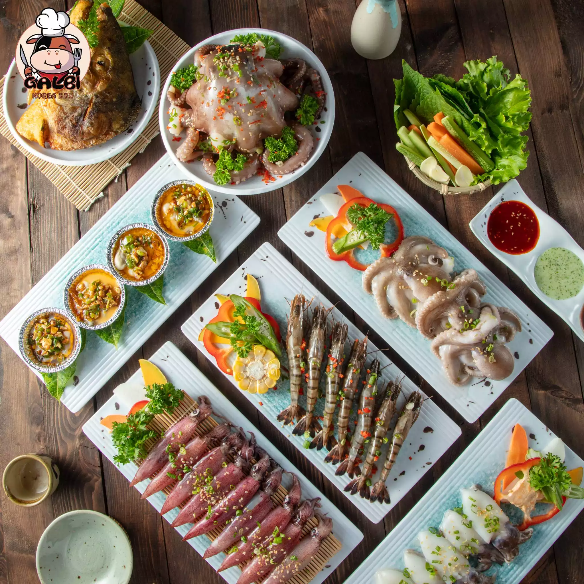 Là địa điểm hoàn hảo để tổ chức các sự kiện lớn như hội nghị, liên hoan, tiệc sinh nhật hay những buổi gặp gỡ ấm cúng, Galbi Korea BBQ luôn đáp ứng tốt mọi nhu cầu của khách hàng. Nhà hàng mang đến cho thực khách những món ăn thơm ngon, hảo hạng như tôm sú, tôm hùm, sườn bò Mỹ, nầm nướng, ba chỉ bò sốt Galbi... Tất cả các món ăn đều được bày trí bắt mắt, hấp dẫn, hứa hẹn sẽ làm hài lòng cả những thực khách khó tính nhất.