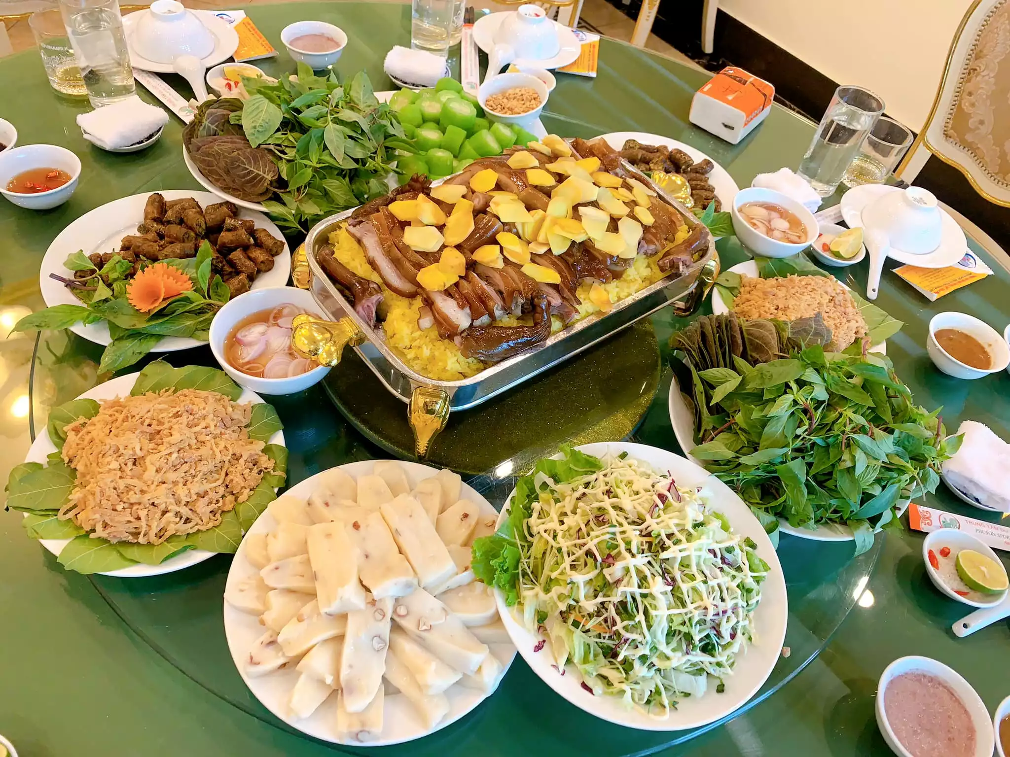 Khi đến với Nhà hàng Quan Họ Phú Sơn, du khách sẽ được thưởng thức những bữa cơm quê dân dã mang đậm phong cách Bắc Bộ. Những món ăn nổi bật như lợn Mán, gà chọi, chim trời, cá chuối nướng chui, cùng nhiều món ăn chế biến từ thủy hải sản tươi sống sẽ khiến thực khách không khỏi ngạc nhiên và ấn tượng. Mỗi món ăn không chỉ đơn giản là sự kết hợp hoàn hảo giữa nguyên liệu tươi ngon mà còn là sự truyền tải hương vị đặc trưng của ẩm thực Kinh Bắc.