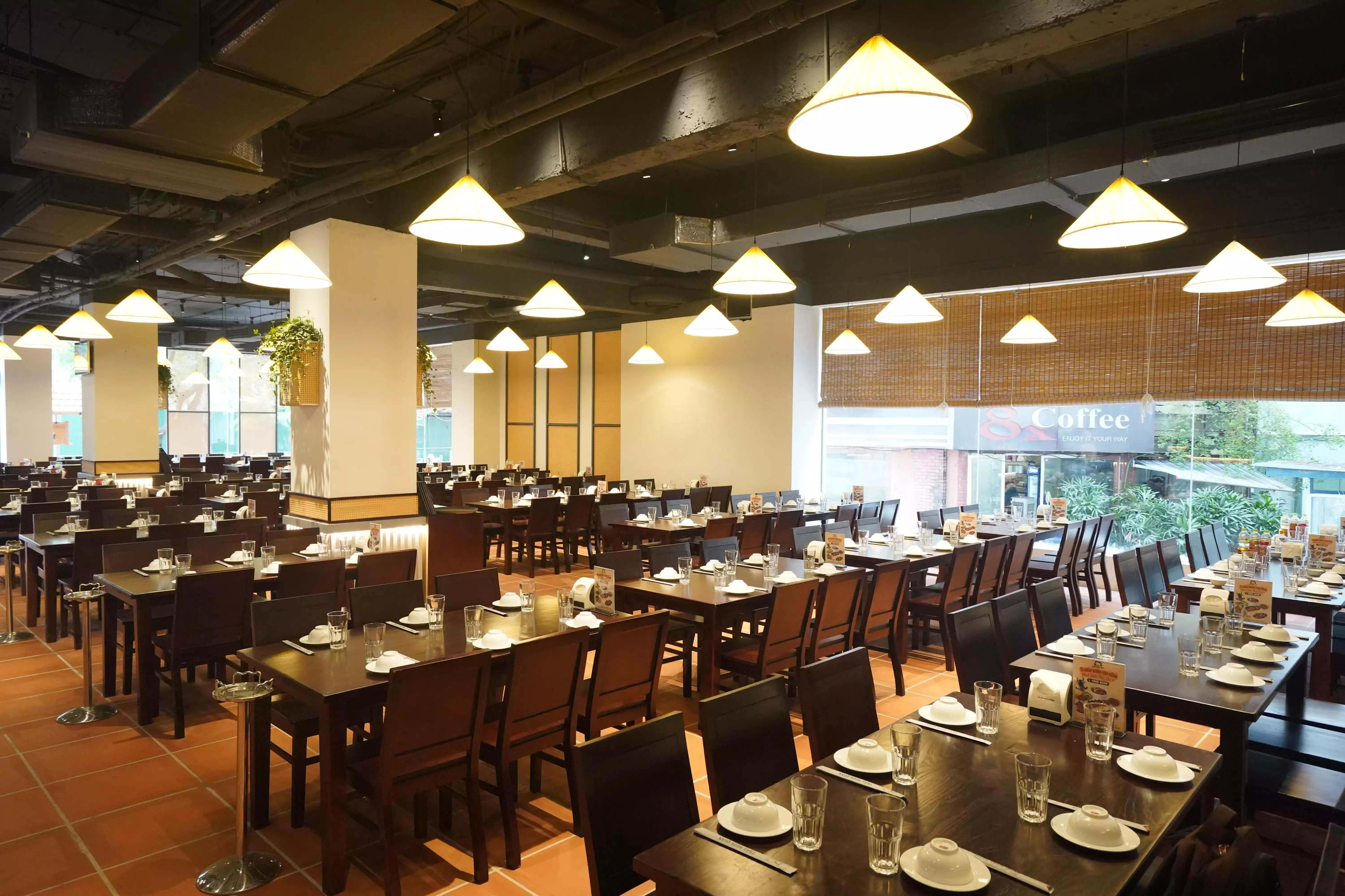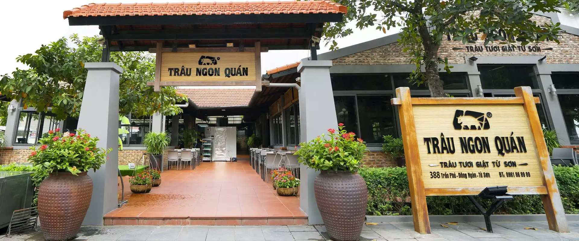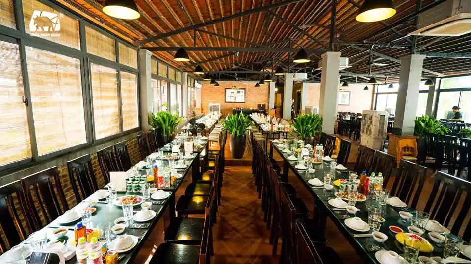 Nằm tại thị xã Từ Sơn, Nhà hàng Trâu Ngon Quán sở hữu không gian ẩm thực tuyệt vời với diện tích rộng lớn lên đến 2.500 m², có thể phục vụ lên đến 1.000 khách. Không gian nhà hàng được thiết kế theo phong cách Á Đông truyền thống với mái ngói, tạo cảm giác gần gũi, dễ chịu cho thực khách. Quý khách có thể lựa chọn ngồi trong không gian ăn uống ngoài trời thoáng mát để tận hưởng cảnh sắc thiên nhiên và không khí trong lành, hoặc thưởng thức bữa ăn trong các phòng riêng tư với đầy đủ tiện nghi, mang lại sự thoải mái tối đa.