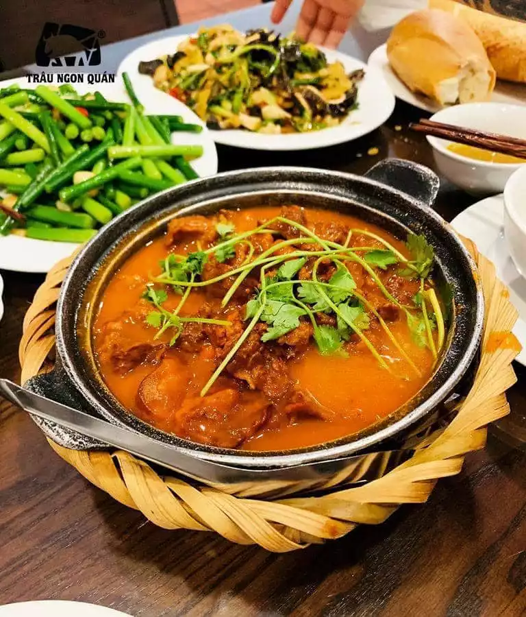 Đặc biệt, Trâu Ngon Quán là điểm đến lý tưởng cho những ai yêu thích những món ăn chế biến từ thịt trâu tươi “giật”. Nhà hàng có thực đơn phong phú với 108 món đặc sản từ thịt trâu, đảm bảo sự đa dạng và chất lượng trong từng món ăn. Từ những món ăn đơn giản đến những món cầu kỳ, tất cả đều được chế biến tỉ mỉ, mang đến hương vị đặc trưng và đậm đà.